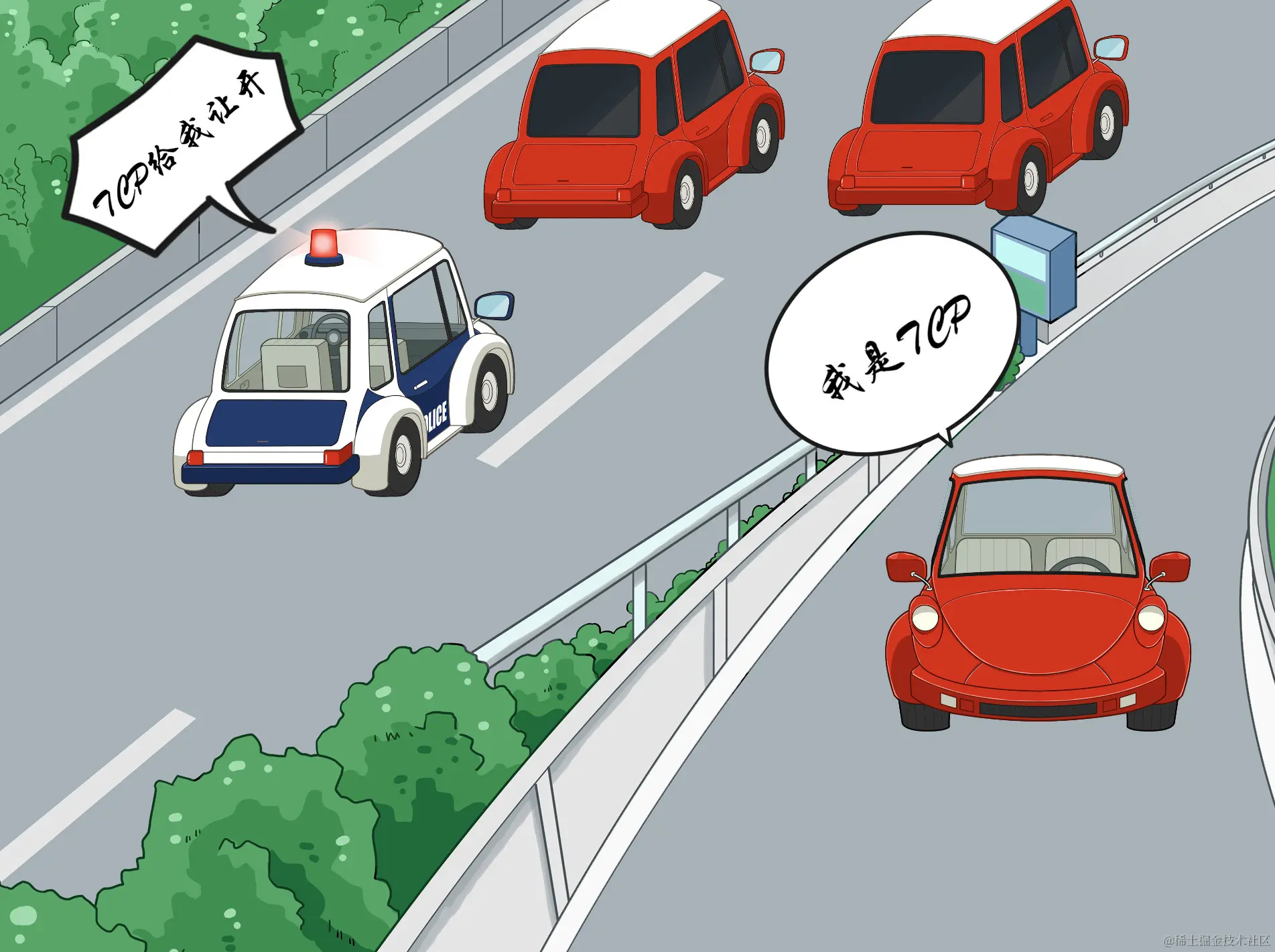 它勤劳而可靠,从不会丢货。如果路上全是一模一样的运输汽车,那这个公路会一团混乱,因为非常紧急的汽车(警车)可能被前面的汽车拦堵在路上,因为它们都是TCP。