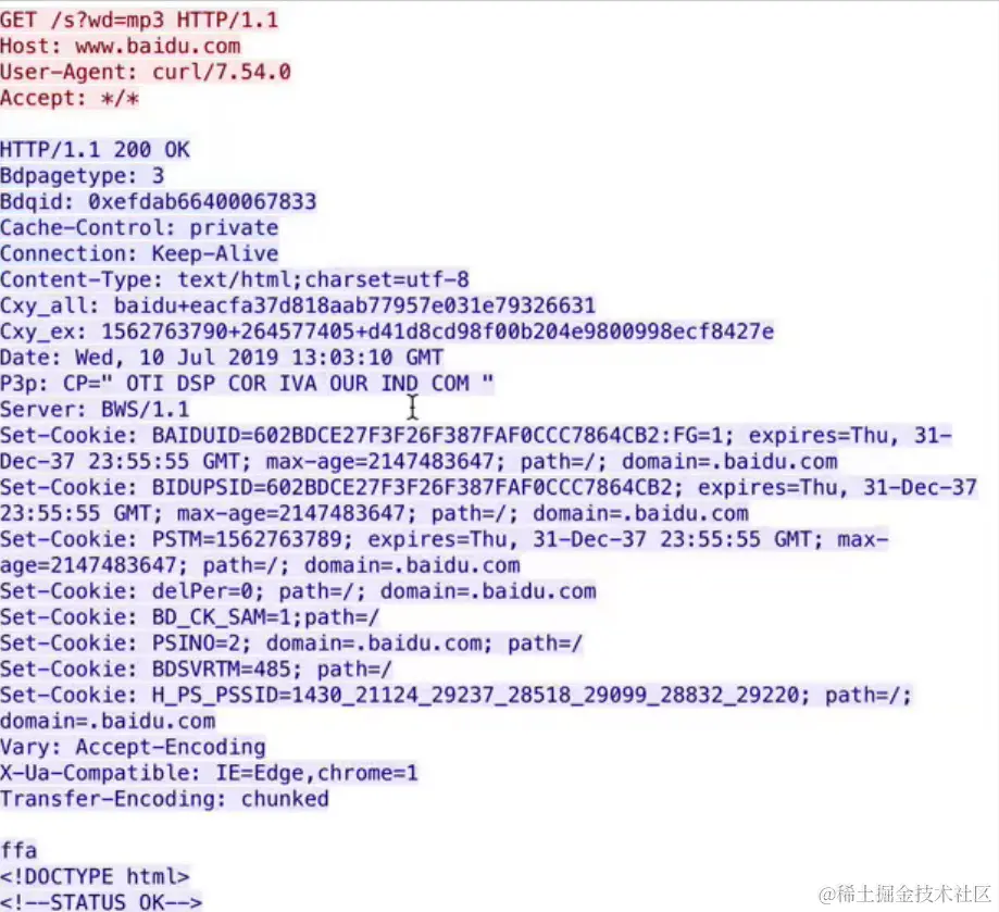 第一次访问百度时,会有setCookie命令。于是浏览器存一份在本地,当再次访问时,浏览器会带上这份cookie在请求头,增加这个机制是为了追踪一个人访问的过程。