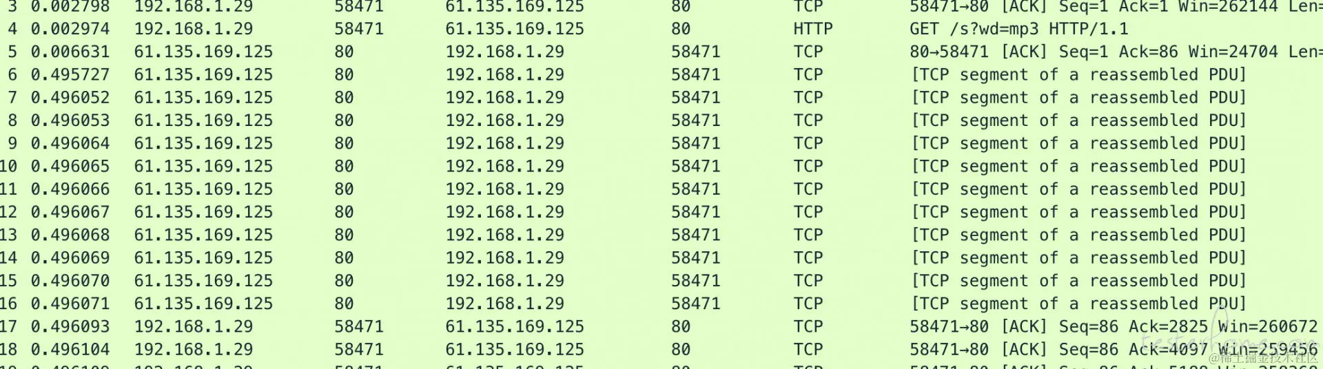 需要注意的是,一个请求可能分为多个包,一个数据也是这样,于是你在wireshark会看到很多包。