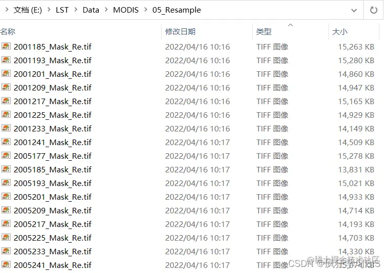 首先,我们来明确一下本文的具体需求。现有一个存储有大量.tif格式遥感影像的文件夹,其中每一个遥感影像的文件名中都包含有该图像的成像时间,如下图所示。且其中除了.tif格式的遥感影像文件外,还具有其它格式的文件。