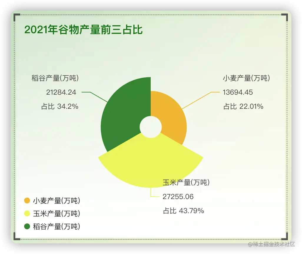 从仪表板里可以看到2021年产量前三的作物分别是: