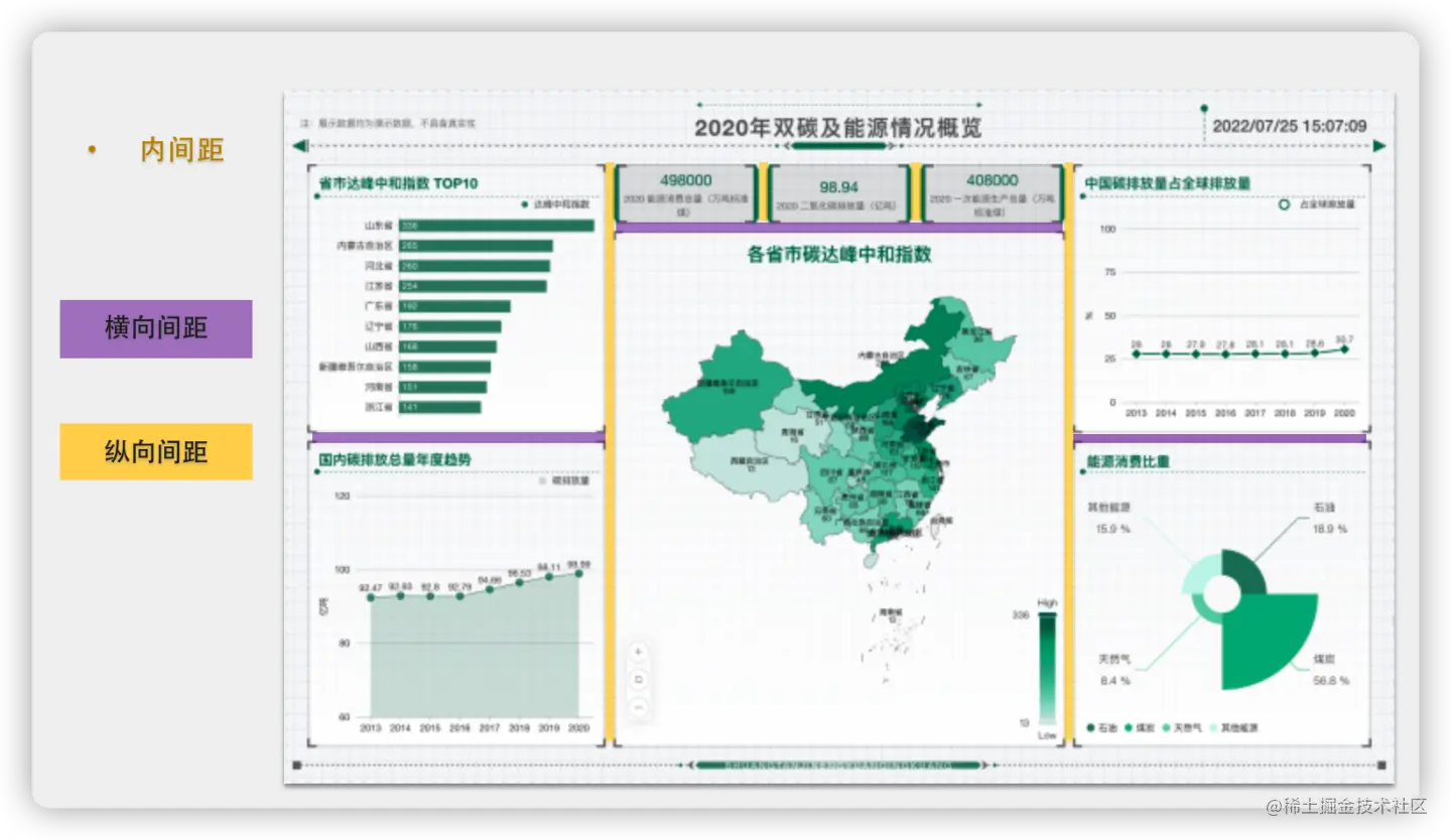 设计数据大屏的间距问题,这个是相对容易被大家忽略的细节问题。在和非专业设计人员的交流过程中,小编发现很多非专业设计人员大多数都没有这个间距的意识和概念。
