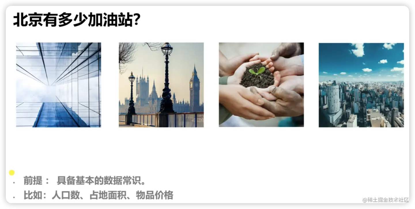 当然,这个数据不一定是准确的,我们需要知道的是,这个过程叫做建模,用到的数据就叫做参数,根据这些数据我就能预测出想要的数值。供需关系是我们解决费米问题的一种思考方式,利用空间关系、收入关系、时间关系等同样可以解决此类问题。