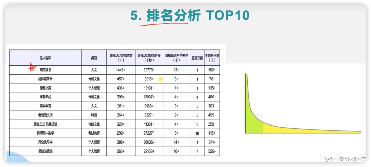 5、Top 排名分析,可通过面积图曲线分析数据的长尾效应。