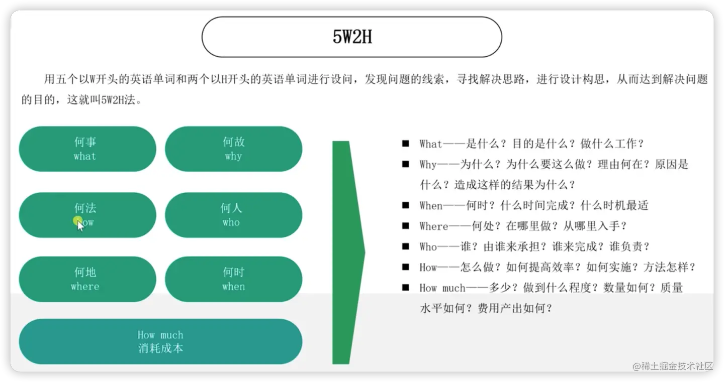 解决问题的时候,我们都可以通过5W2H的方式来寻找解决问题的角度。