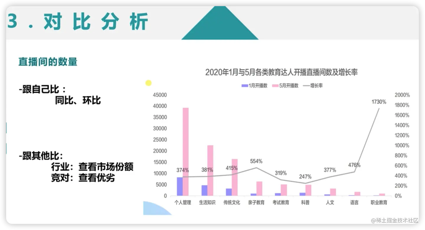 数据分析的思维需要培养,先模仿别人,从模仿者到创造者。首先需要建立数据的敏感性,能快速了解数据在说什么,下面我们以抖音教育直播为例,首先来了解核心指标,以及各个指标所表示的含义。