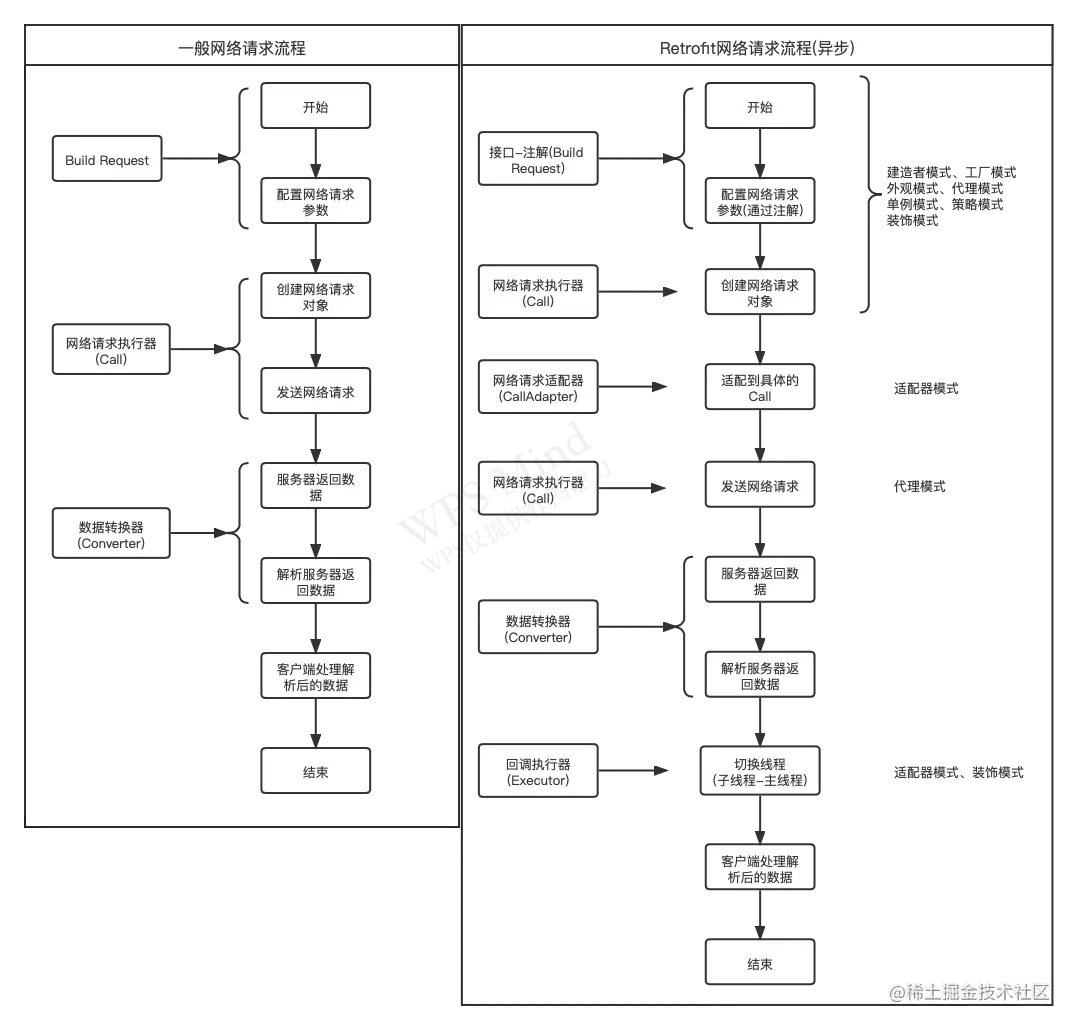 - 网络请求的工作本质上是由OkHttp完成的,而Retrofit仅负责网络请求接口的封装