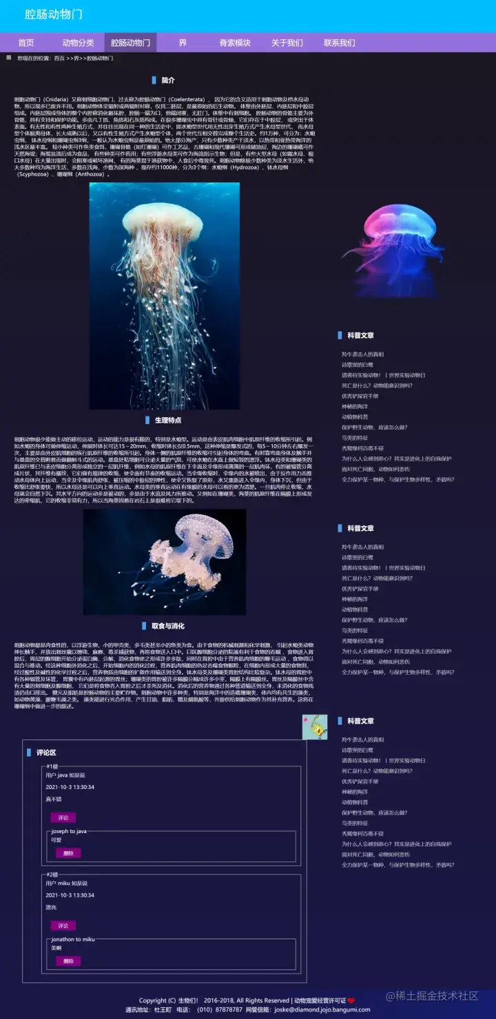 nav的前五个,即首页、动物分类、腔肠动物门、界、脊索模块是可以点开的