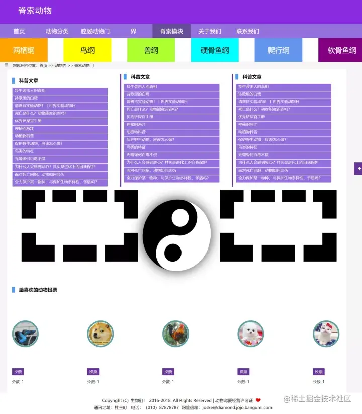 可以在页面创建投票栏目,点击投票按钮会让动物得票数上涨。