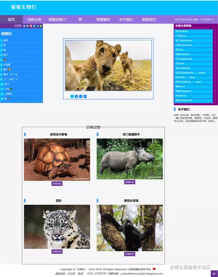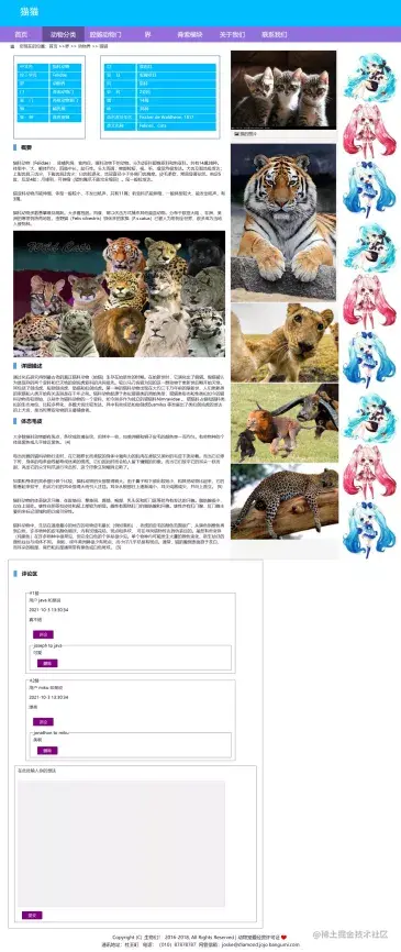 首页就是主页,动物分类里面的猫是可以点开的,就是内容页1,