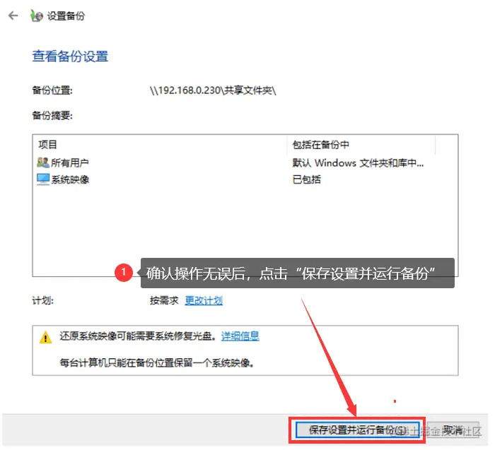 步骤6: 点击【保存设置并运行备份】,电脑就会对C盘开始备份数据了。