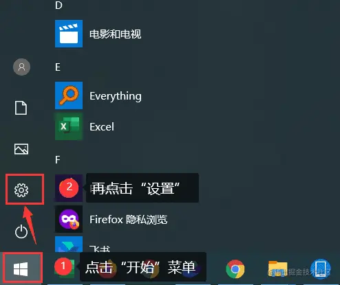 步骤1: 鼠标单击电脑桌面左下角的【开始】图标,找到【设置】(齿轮样式的图标),点击它;