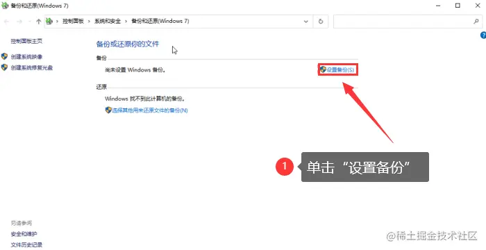 步骤3: 单击页面右侧的【设置备份】。如果你之前有使用过,就直接点击【更改设置】来重新设置;
