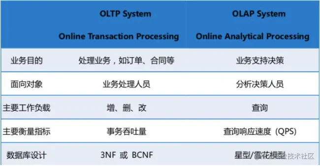 我们常说OLTP是数据库的应用,OLAP是数据仓库的应用,两者主要的区别如下图:
