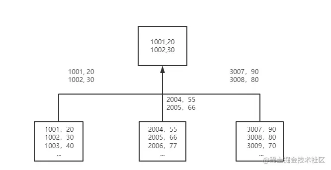 在 ClickHouse 的聚合查询中,每个机器都会把自己的聚合的中间状态返回给分布式节点,也就是说,即使你只是想要Top100,每台机器也会把自己所拥有的所有枚举值都返回给分布式节点进行进一步的聚合。ClickHouse 的聚合过程大致如下图: