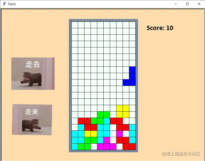 有颜色的方块儿还是玩起来有意思些,空格暂停、方向键移动的哈。