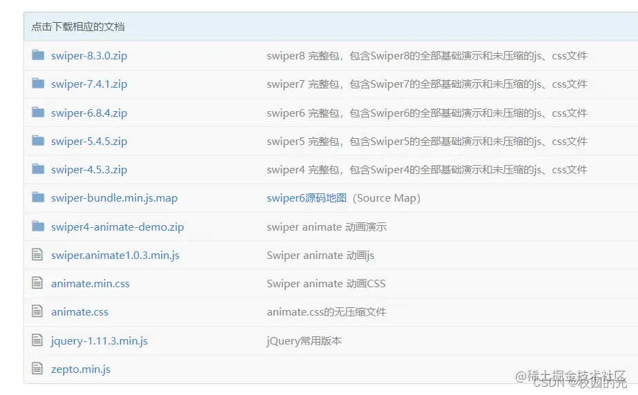 点击获取swiper 下载本地的压缩包或者获取cdn在线链接