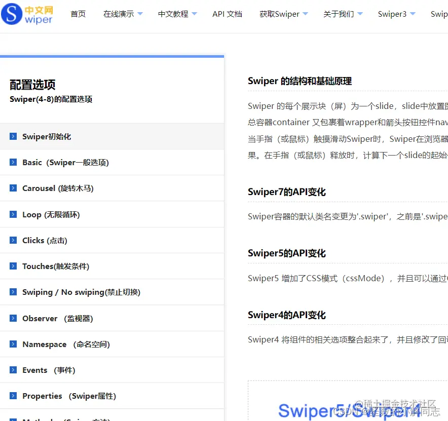 我们可以点击关于swiper,里面有每次更新的记录,修改了哪些。