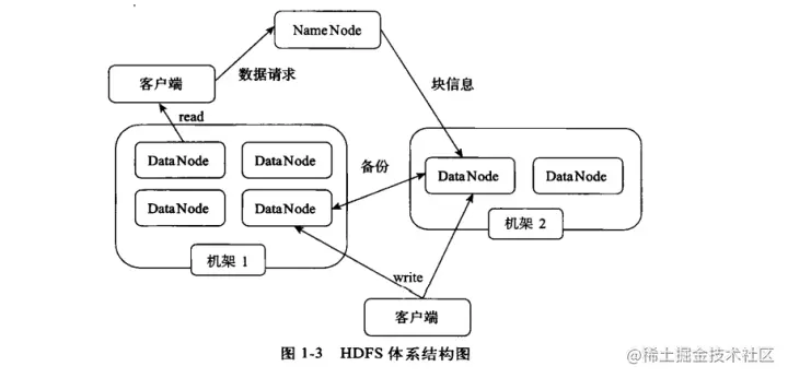 其中 NameNode 作为主服务器,管理文件系统的命名空间和客户端对文件的访问操作﹔集群中的 DataNode 管理存储的数据。HDFS 允许用户以文件的形式存储数据。从内部来看,文件被分成若干个数据块,而且这若干个数据块存放在一组 DataNode 上。NameNode 执行文件系统的命名空间操作,比如打开、关闭、重命名文件或目录等,它也负责数据块到具体 DataNode 的映射。DataNode 负责处理文件系统客户端的文件读写请求,并在 NameNode 的统一调度下进行数据块的创建、删除和复制工作。
