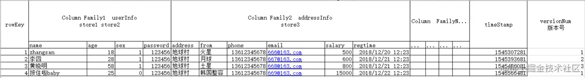 - 表示如下 : 列族名:列限定符 例如: C1:USER_ID C1:SEX