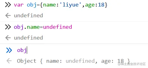 obj.xxx=undefined;并没有删除name这个属性名 只不过是把name的属性值改为undefined;而delete obj.xxx删除的是属性名(删除了属性名,自然就没有属性值了)