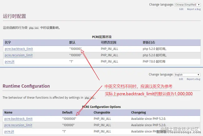 这里有个有趣的事情,就是PHP文档中,中英文版本的数值是不一样的: