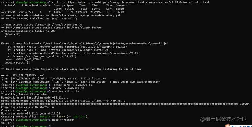 (apc-ve)elven@pc-elvenhuang:~$ curl -o- https://ghproxy.com/https://raw.githubusercontent.com/nvm-sh/nvm/v0.38.0/install.sh | bash