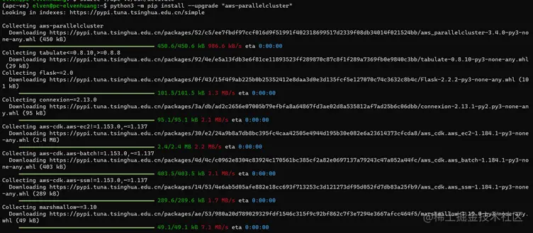 (apc-ve)elven@pc-elvenhuang:~$ python3 -m pip install --upgrade "aws-parallelcluster"