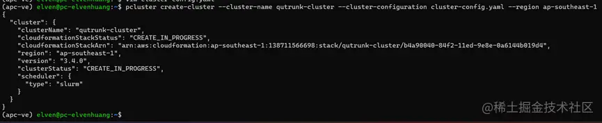 (apc-ve) elven@pc-elvenhuang:~$ pcluster delete-cluster --region ap-southeast-1 --cluster-name qutrunk-cluster