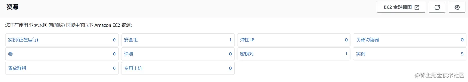 打开 EC2 服务首页,控制面板 | EC2 Management Console (amazon.com) 选择 Region 为 ap-southeast-1,然后选择左侧导航栏下的网络与安全,选择密钥对。