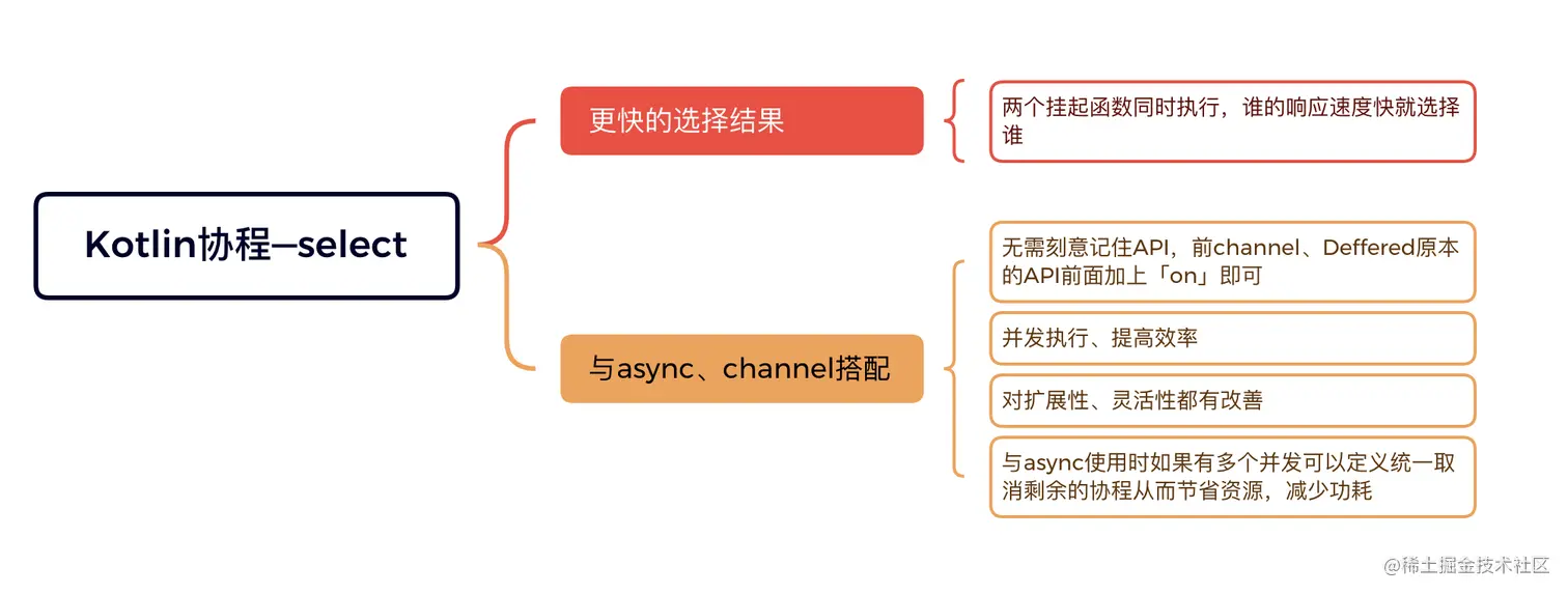 - 当 select 与 async、Channel 搭配以后,可以并发执行协程任务,以此大大提升程序的执行效率甚至用户体验,并且还可以改善程序的扩展性、灵活性。