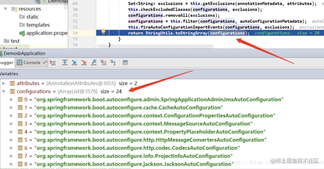 我们可以看到getCandidateConfigurations()这个方法,他的作用就是引入系统已经加载好的一些类,到底是那些类呢: