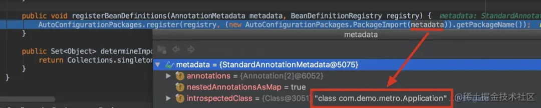 那metadata是什么呢,可以看到是标注在@SpringBootApplication注解上的DemosbApplication,也就是我们的主配置类Application: