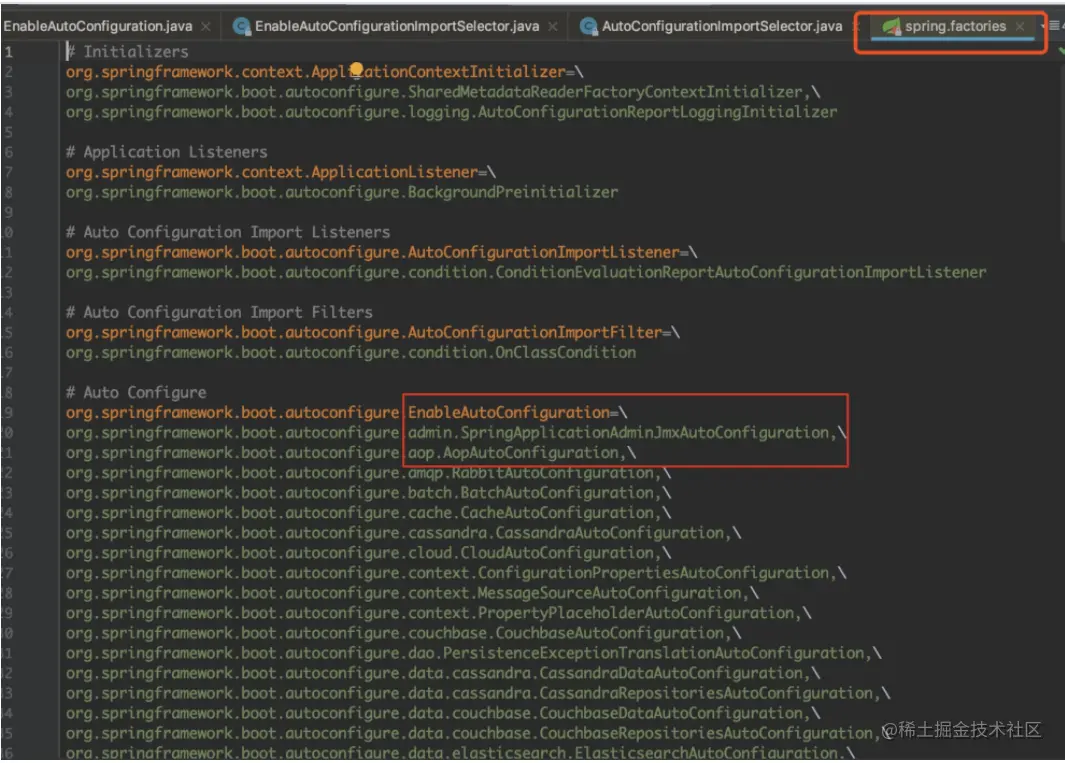 会从META-INF/spring.factories中获取资源,然后通过Properties加载资源: