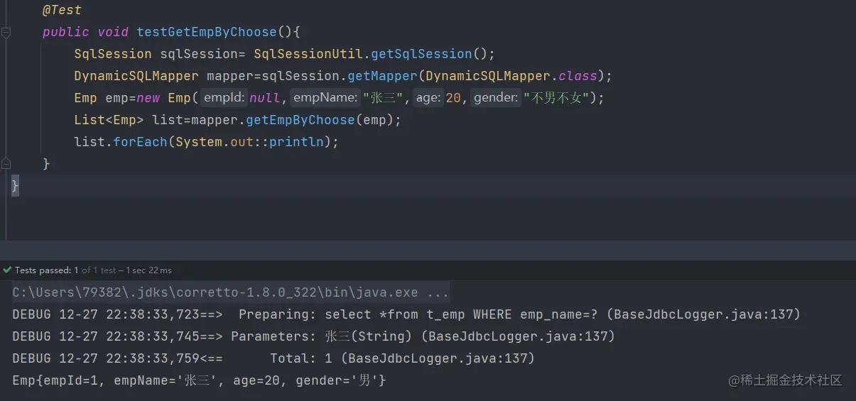 DEBUG 12-27 22:35:57,043==> Parameters: 张三(String) (BaseJdbcLogger.java:137)
