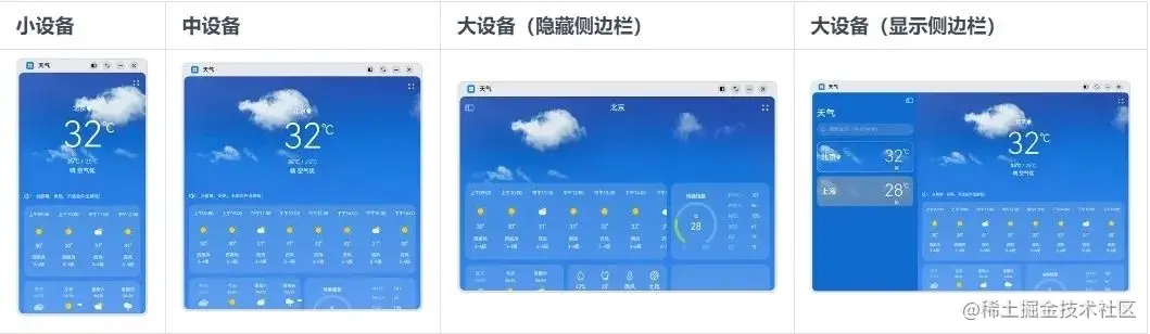 本Sample展示一个天气应用,包括首页、城市管理、添加城市、更新时间弹窗,体现一次开发,多端部署的能力。