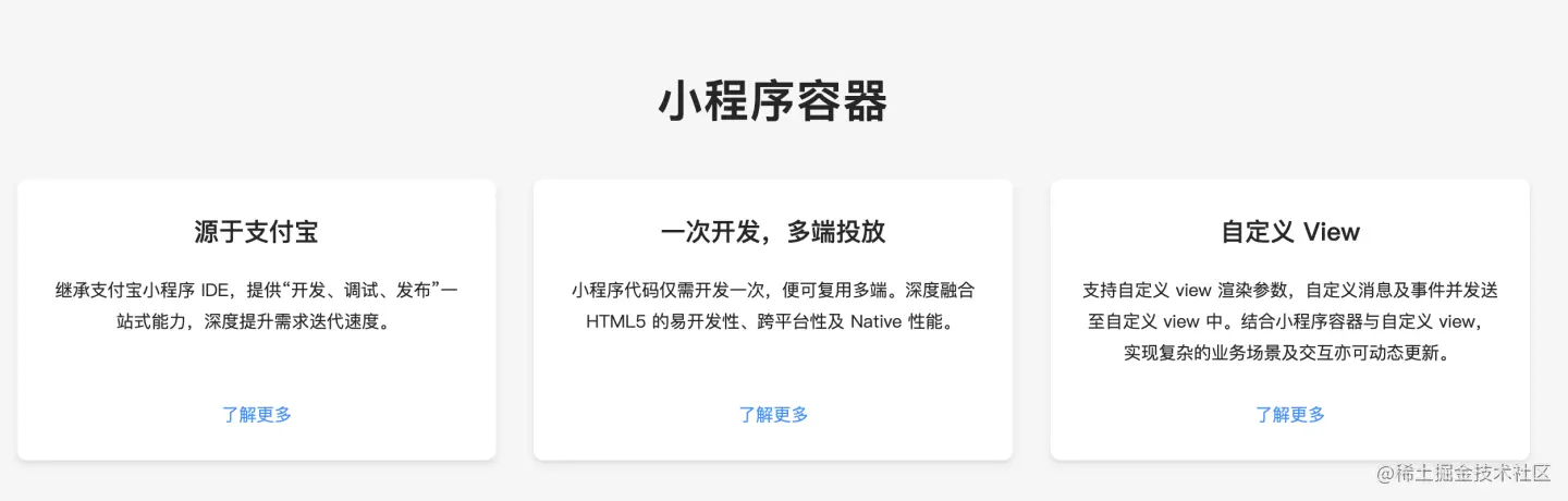 以上的两点是小程序容器层面的兼容,可以看得出他们家的产品是尽可能以开放及兼容的态度支持市场上的前端框架开发的小程序应用,现在技术进程中,不开放也许会意味着在未来的市场使用份额中彻底输在起跑线上。