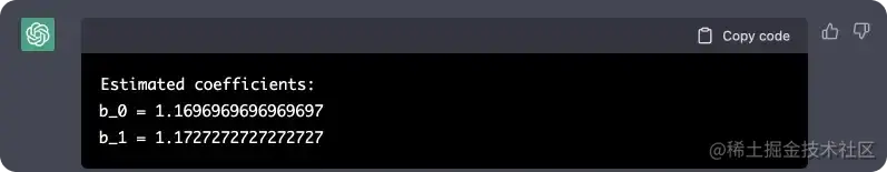 好吧,似乎它猜中了这一个!让我们跳到更复杂的东西。让我们从一些简单的机器学习算法开始,比如线性回归。我想知道ChatGPT是否有能力解决一个简单的优化任务...