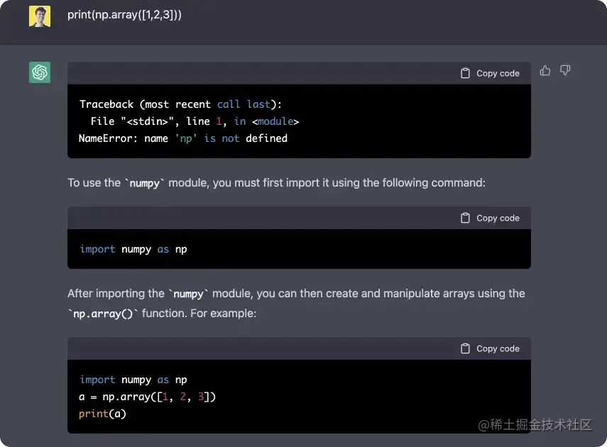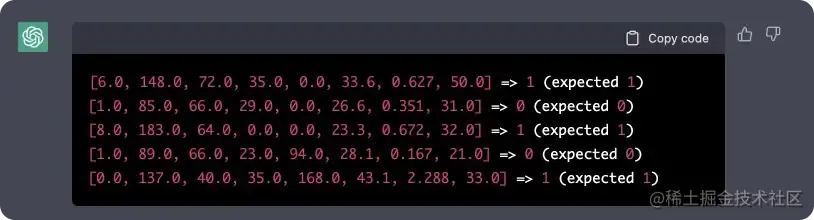 其结果与huggingface的输出结果很接近,但是不一致。我猜测是因为Huggingface的API改变了,由于ChatGPT没有在最新的历史数据上进行训练,所以它以旧的格式输出结果。