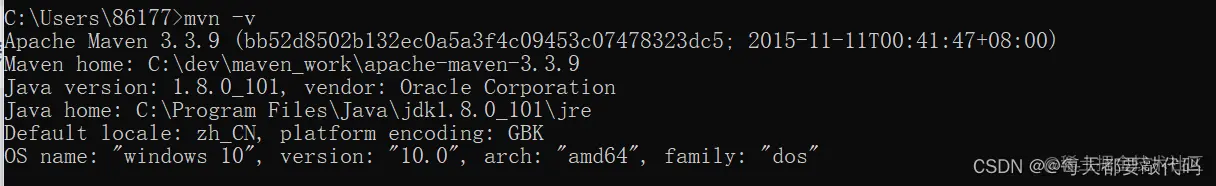 (4)验证,新的命令行中,执行mvn -v