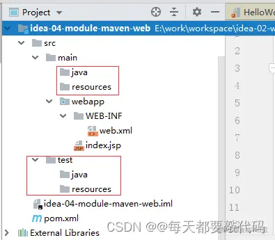 (1)创建缺省文件夹:创建好的结构是没有java目录和resources目录的