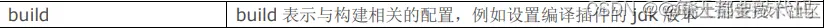 build : maven在进行项目的构建时, 一些配置信息,例如:指定编译java代码使用的jdk的版本等 。