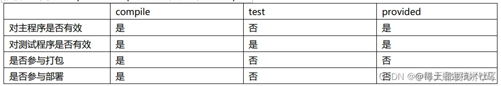 (2)scope的值有 compile, test, provided ,默认是compile