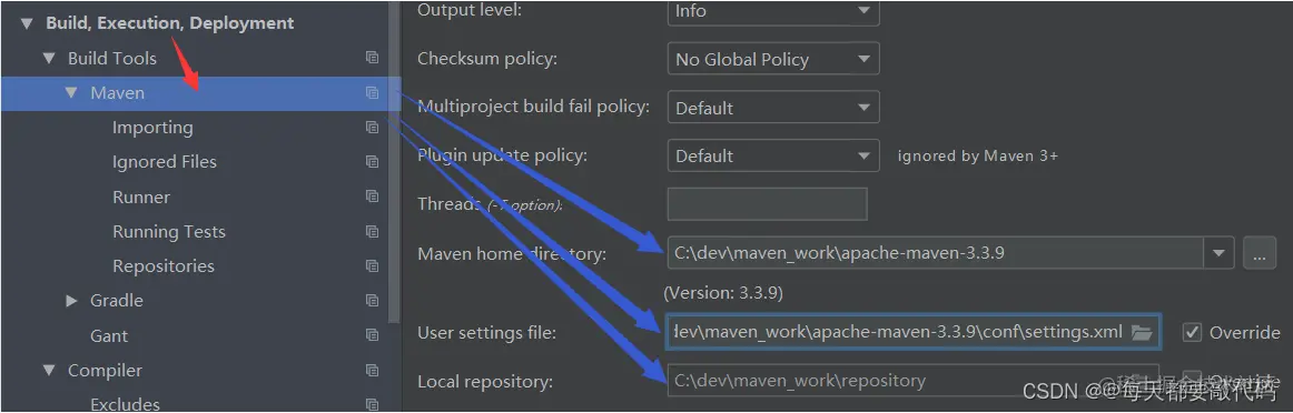 例如:在没有网络的情况下,我们可以提前把所有的资源下载好,放到一个文件夹里面,然后把这个文件夹配置到指定目录里作为本地仓库使用,例:C:/dev/maven_work/repository