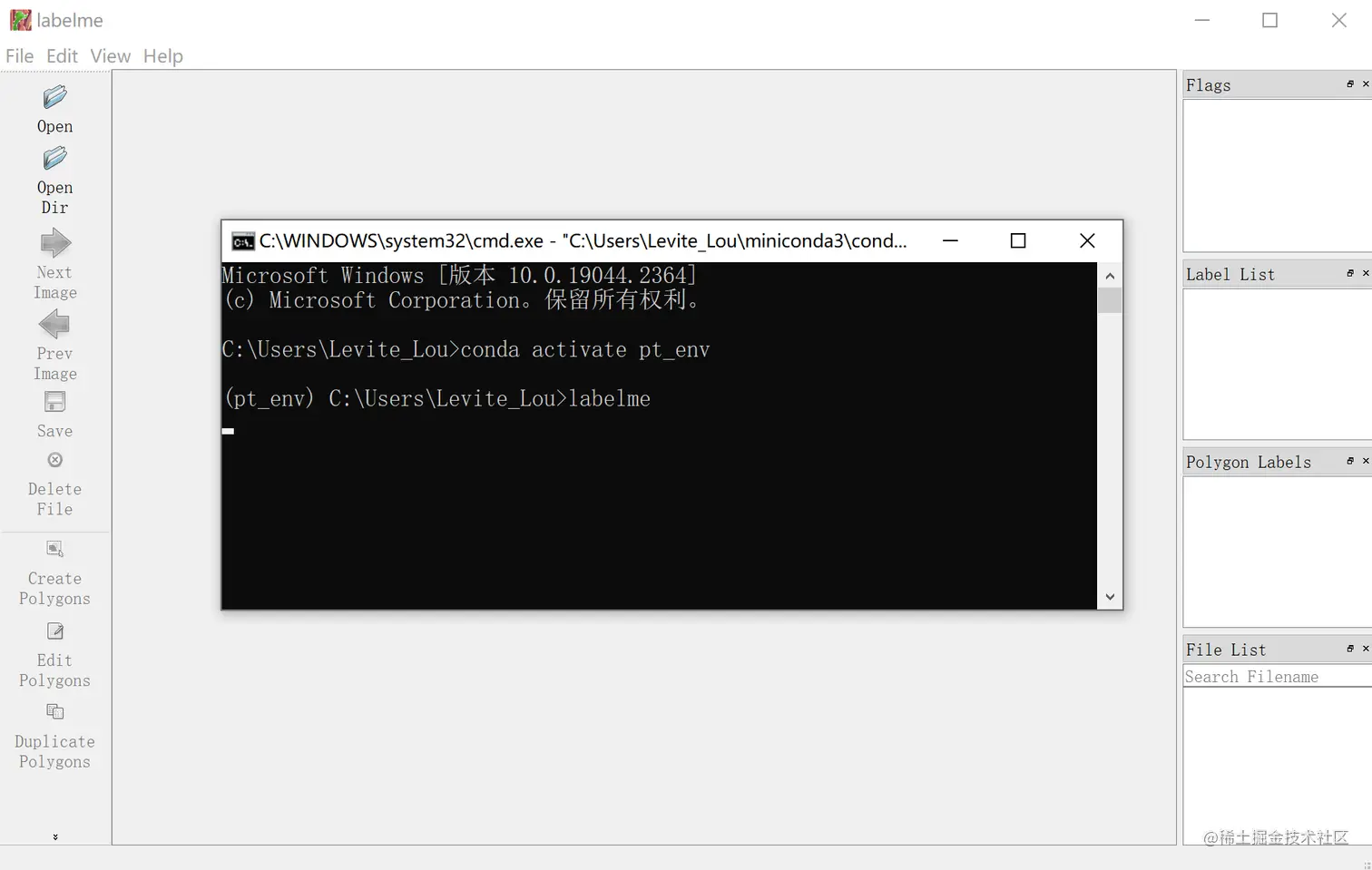 在采集完图像数据之后,我们就进入到了数据的标注环节。本项目采用的标注工具为labelme,他的下载和使用非常简单,只需一下两步: