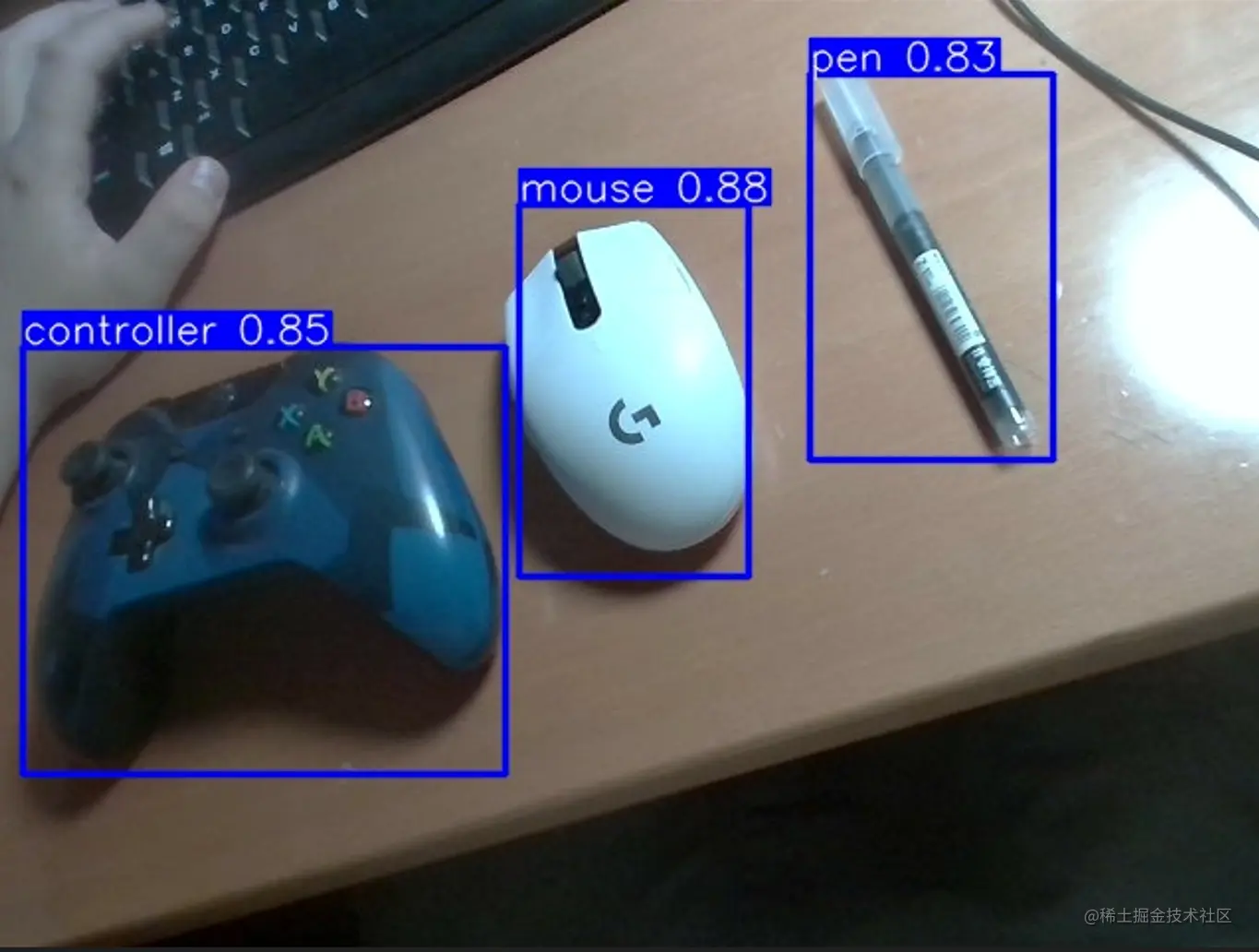 为了实现三个物体的监测,本项目大概采集了 两百多张照片 (读者可以根据检测物体个数、模型鲁棒性等因素自行决定数据集照片张数),这里展示数据集中采集到的一张照片