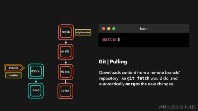 相比之下,git fetch是一个更安全的选择,因为它从你的远程仓库拉入所有的提交,但不会对你的本地文件做任何修改。