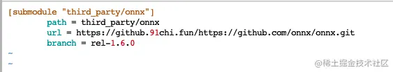 第一步: 进入已经 clone 好的主项目目录,用 vim 指令打开.gitmodules 文件,里面记录了需要 clone 的子项目,在子项目 github url 前都加上加速地址https://github.91chi.fun/即可。