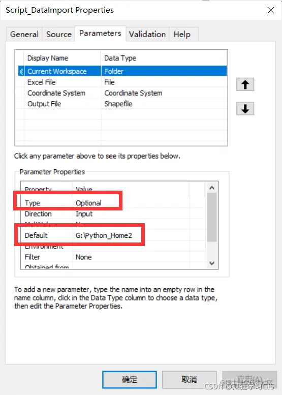 打开自定义工具,可以看到这一参数不带有绿色的“必填”标识,且具有一个默认值。