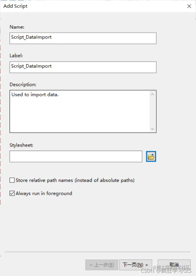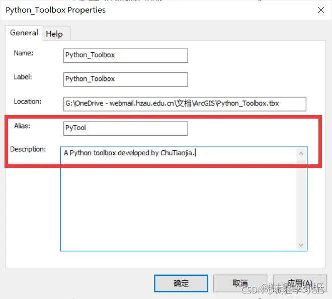 在弹出的窗口中配置该脚本成为工具箱里的一个自定义工具后,该工具的名称、标记、描述信息等。